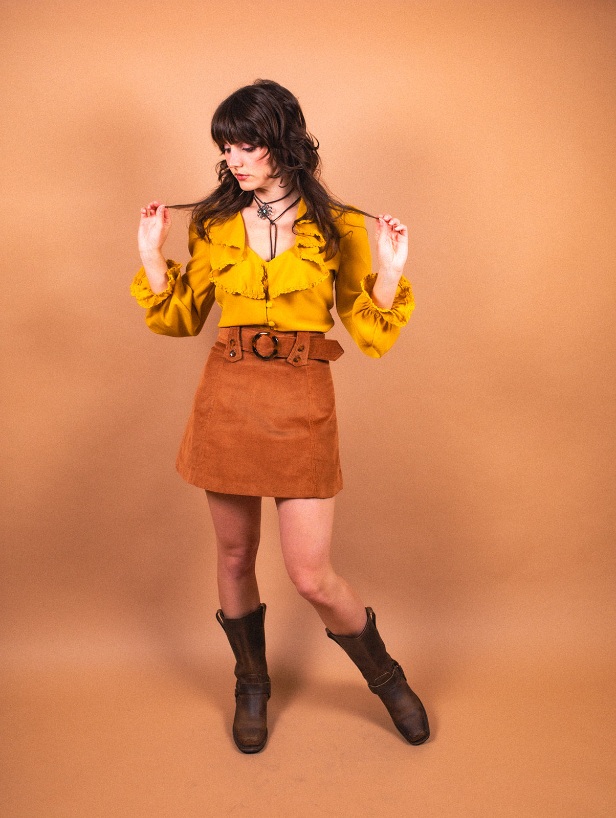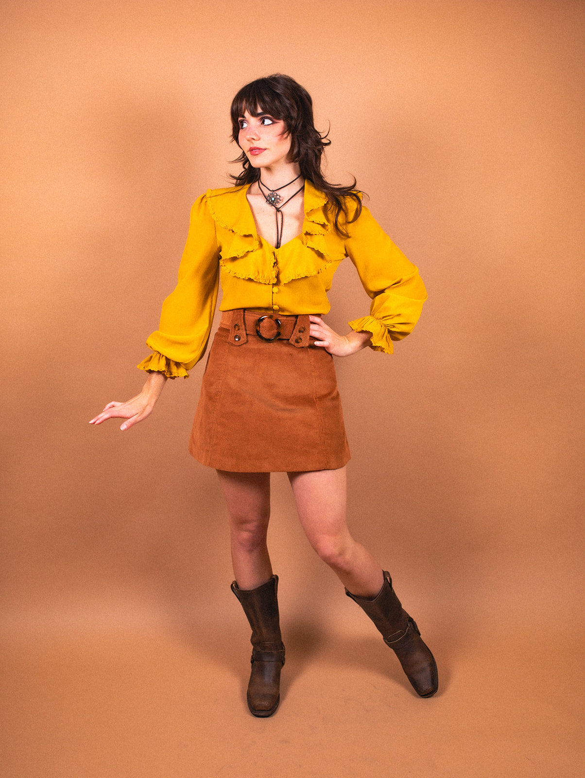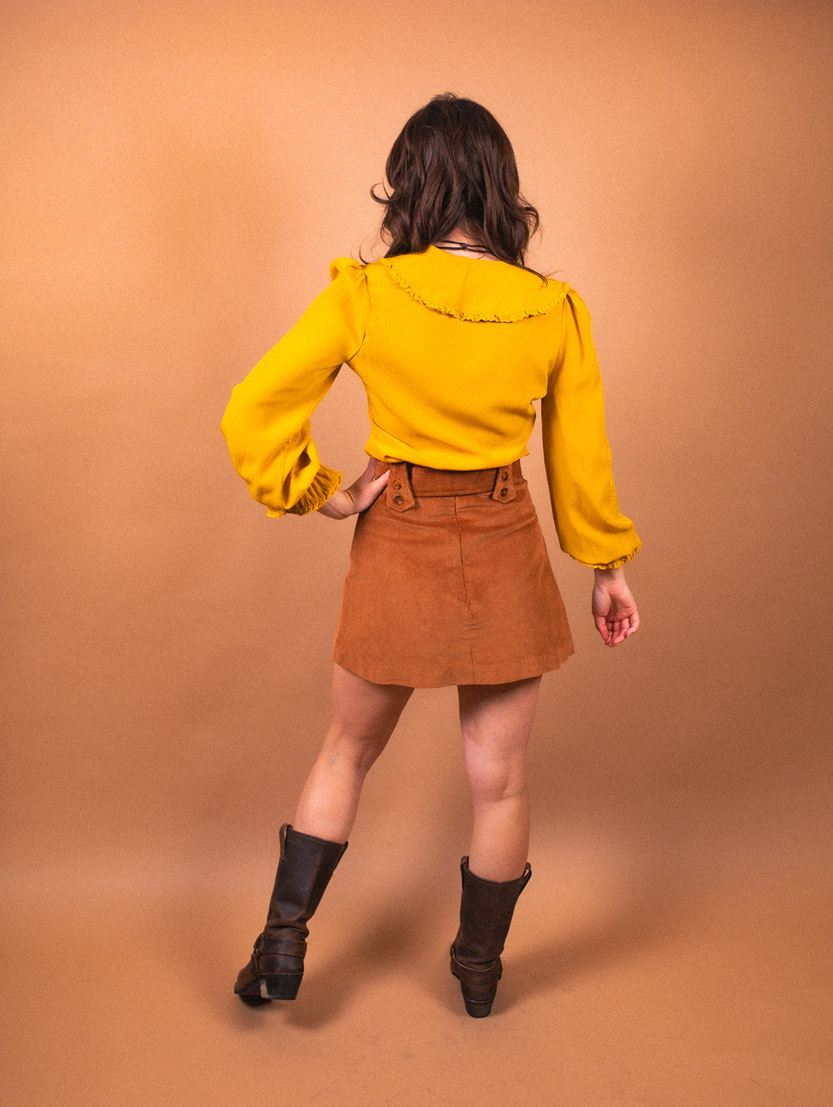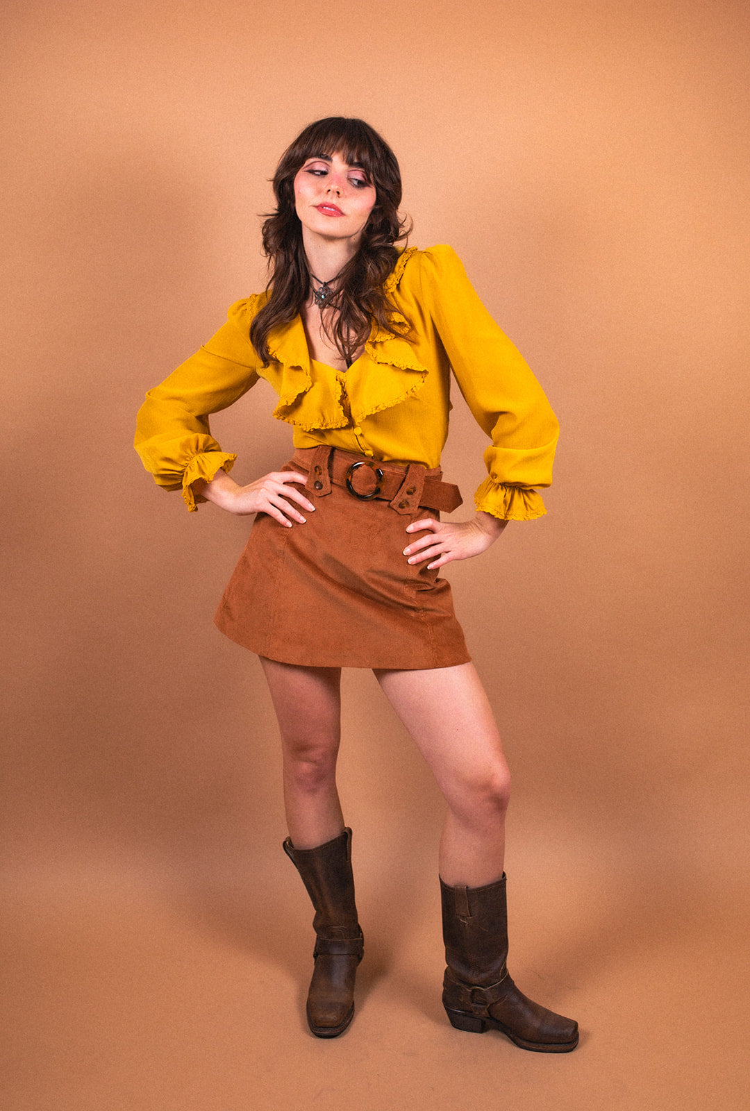 The Angelina ruffle collar blouse is the perfect mix of vintage charm and modern style. This blouse is the vintage-inspired staple your wardrobe needs. Perfect to style with your favourite mini skirt or jeans. Designed with a wide ruffle collar, long sleeves with an elasticated cuff, and a matching button front, the Angelina blouse is both flattering and stylish.